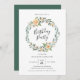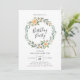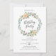Nuestras elegantes invitaciones para fiestas de cumpleaños incluyen las palabras "Fiesta de Cumpleaños", rodeadas por una impresionante corona floral con rosas de melocotón pintados y exuberante vegetación. Personalice la moda, las invitaciones florales para fiestas de cumpleaños con los detalles de su fiesta para un diseño elegante. El reverso de la invitación a la fiesta de cumpleaños incluye un fondo verde claro que es perfecto para agregar una foto o más texto.