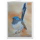 Este wren azul fue fotografiado en Tasmania por un amigo muy especial que entonces pidió que pintara la fotografía. El azul magnífico en el wren hace estallar contra el fondo anaranjado como las líneas entre el pájaro y el fondo empaña maravillosamente. Este de la tarjeta luce increíble también en un marco.