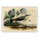 Pintura del vintage de un Stonechat o de un wren americano. Pequeño pájaro grisáceo lindo en un fondo del sudoeste con los hydrangeas púrpuras polvorientos. Ilustrado en la era del Victorian, 1862 por el artista y el ornitólogo Juan Cassin del americano.
