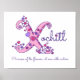 Bonito X monograma poster de nombres de arte perfecto para una habitación de chicas en tonos rosa, morado y azul oscuro sobre un fondo blanco que se puede cambiar si se requiere. Personaliza con tu propio nombre empezando por X, y nombra el significado para el toque personalizado a tu dormitorio, sala de juegos o guardería, este ejemplo es para el nombre Xaria Princesa de las flores, en uno con la naturaleza. La impresión poster es ideal para un recién nacido, un bautizo o una ducha de bebé. © Exclusivo X monograma corazones y flores descripción del dibujo y diseño gráfico de arte de Sarah Trett. www.sarahtrett.com para www.mylittleeden.com