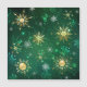 Navidades verdes de fondo con copos de nieve de oro y joyas verdes. Copos dorados de nieve. Navidad.