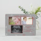 Un toldo transparente de delicados copos de nieve en rojo y blanco se encuentra sobre un fondo de "USTED PICK COLOR". La tarjeta cuenta con tres ventanales horizontales para fotos de 6x4". (FP)
