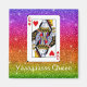 Celebra tu descaro con este imán de yasssss reina. Fondo de brillo arcoíris con un diseño de carta de reina.