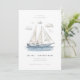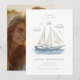 Elegante Foto Moderna de Acuarela de Yate de Vela para Salvar la Fecha - Establece el tono para tu día especial con esta impresionante invitación de Save the Date con tema náutico. Un elegante barco de vela de acuarela se desliza sin esfuerzo a través de un océano sereno de color azul zafiro, sus velas ondeando suavemente en la brisa. Arriba, nubes suaves y tenues flotan en el cielo, mientras que delicadas gaviotas vuelan con gracia, completando la tranquila ambientación costera. Tu hermosa foto aparece en sangrado completo en la parte posterior del Save the Date.