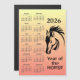 Chinese Year of the Horse Design 2026 Calendar Magnetic Card with customizable background color. and text.