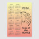 Chinese Year of the Horse Design 2026 Calendar Magnetic Card with customizable background color. and text.