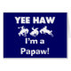 Yee Haw Soy camisetas Papaw, tazas, tarjetas, pegatinas, botones de invitación, keepsakes de papel y otras prendas de papel y regalos con un caballo negro y un diseño de texto negro. Estas prendas de vestir y regalos son perfectas para los abuelos por primera vez o para los papas aderezados de una nueva llegada.