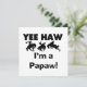 Yee Haw Soy camisetas Papaw, tazas, tarjetas, pegatinas, botones de invitación, keepsakes de papel y otras prendas de papel y regalos con un caballo negro y un diseño de texto negro. Estas prendas de vestir y regalos son perfectas para los abuelos por primera vez o para los papas aderezados de una nueva llegada.