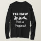 Yee Haw Soy camisetas Papaw, tazas, tarjetas, pegatinas, botones de invitación, keepsakes de papel y otras prendas de papel y regalos con un caballo de rosquilla y diseño de texto. Estas prendas de vestir y regalos son perfectas para los abuelos por primera vez o para los papas aderezados de una nueva llegada.
