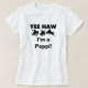 Yee Haw Soy una Poppi de camisetas, tazas, tarjetas, pegatinas, botones de invitación, keepsakes, y otras prendas de pimienta y regalos con un caballo de buckaroo y diseño de texto en blanco o negro. Estas prendas de ppi y artículos de regalo son perfectos para los abuelos por primera vez o para las papas de nueva llegada.