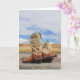 Un hermoso cielo de Wyoming con nubes danzando a través de él establece el fondo para esta espectacular fotografía occidental. Estas botas de vaquero desgastadas lucen un par de espuelas hechas a medida con pesos mexicanos, completas con letras "Yeeha" y correas de cuero. Personalice el mensaje dentro, o déjelo como "¡Yeeha! ¡Es hora de levantar los talones!". Perfecto para cumpleaños, jubilación o muchas otras ocasiones.
