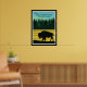 Parque Nacional Yellowstone, Wyoming, afiche de viaje con bison.