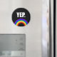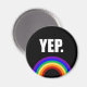 Un botón que dice "Yep" debajo es un arco iris, un símbolo humorístico del orgullo LGBT gay y lesbiana.