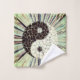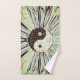 Iluminar ráfagas de colores de rayo marrón y verde mágicamente emitiendo de un inspirador símbolo yin yang. Vibes grises hipnóticas.