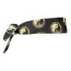 Joyería, oro y símbolo yin yang negro sobre fondo negro. Oro yin yang.
