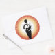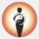 Yin Yang Figura con el arrebato de sol rojo y oro. Resumen de la figura oriental mostrada sosteniendo un símbolo yin yang en armas que se mantienen en posición circular. El símbolo Yin Yang ha tomado el lugar de la bola rodante invisible en un movimiento del ejercicio de tai chi Wave Hands Like Clouds.