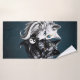 Yin Yang Wolves. La imagen muestra a un lobo blanco y a un lobo negro, con la cabeza enfrentada en una toma de video. El lobo blanco tiene ojos azules y un adorno dorado con una gema azul en la frente, mientras que el lobo negro tiene ojos amarillos y un adorno similar. Los lobos están posicionados contra un fondo azul oscuro con un símbolo yin yang blanco entre ellos.