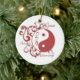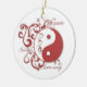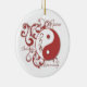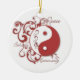 Un diseño que remolina de volutas y de yinyang honra este ornamento precioso del día de fiesta con la paz, el equilibrio, y la armonía de las palabras. Esto hace un regalo excelente para los que quieran celebrar el alcohol del día de fiesta pero puede no ser cristiano.