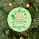 Celebre el día de primer St Patrick del bebé con este diseño lindo del irlandés que ofrece un bebé adorable que lleva una camiseta y un pañal verdes que llevan a cabo un traqueteo del trébol. El texto dice que es YO EL DÍA del PRIMER ARROZ del ST. Fondo verde y blanco del lunar. Perfeccione para las celebraciones de familia o las fiestas de cumpleaños. ¡Original de PinkInkArt!