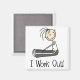 Un chica con figura de palo haciendo ejercicio y un texto que dice "¡Trabajo!" en un imán de temas de fitness con figura de palo de personalizable.