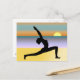 © Sunny Mars Designs - Beach Yoga Warrior Pose Personalizable Postales - Guay, vibrante personalizado imprimió postal de yoga con una silueta negra de una mujer practicando yoga en la playa con el sol en el fondo. Concepto de salud, fitness, paz y tranquilidad. Ideal para los amantes del yoga, los profesores de yoga, los amantes del yoga o los estudiantes de yoga. Puedes personalizarlo añadiendo tu propio nombre o detalles de tu estudio de yoga o clases de yoga.