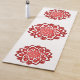 Flor roja de mandala sobre alfombra de yoga de fondo blanco.