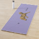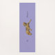 Calming purple yoga mat featuring our obstinate mascot, Acorn the airedale terrier stretching his paws.