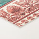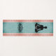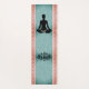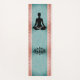 Una silueta negra de una yogi en una pose de loto y un loto negro debajo sobre un fondo de jade con un naranja rojizo, un borde ornamentado. Moda Zen.