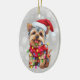 Yorkie en Navidades ilumina ornamento cerámico