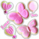 El Yummy 1 presenta bonitas mariposas y globos fiestas en tonos rosas.