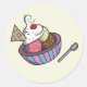 Pegatinas divertidos con un delicioso tazón con tres cucharas de helado: una es una vainilla , otra es un chocolate y otra es un sabor a fresa . Está coronada con una crema batida, una galleta de gofre, una cereza roja fresca y algunas rociadas de colores. Perfecto para una fiesta de cumpleaños de niños o para cualquiera que ame helado. © ArianeC Ilustraciones-Todos los derechos reservados