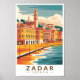 Diseño de viaje vectorial retro de Zadar. Zadar, una ciudad de la costa dálmata de Croacia, es conocida por las ruinas romanas y venecianas de su casco antiguo peninsular.