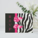 Tarjetas de nota plana RSVP personalizadas impresas en papel de invitación de su elección. Elegantes rayas personalizados de cebra en blanco y negro y arcos rosados impresos con arco personalizado para cualquier evento:- bodas, duchas de bebé, duchas de novias, fiesta de cumpleaños de mujeres, dulces 16 fiestas, celebraciones de quinceanera etc. con divertida imagen impresa de rayas de piel de animales de cebra en blanco y negro, tiras impresas lindas, brillantes y de bonito joyas en un fondo negro con lujosos textos cursivos rosados calientes. Atención: Todas las invitaciones en Zazzle tienen imágenes impresas planas. Estas elegantes, modernas, divertidas y glamurosas tarjetas de brillo y glamour están decoradas/impresas a ambos lados. Bonitas, modas, modernas y modernas tarjetas personalizadas. El texto, el tipo de letra y el color de la fuente pueden personalizarse para satisfacer sus necesidades. Si necesitas ayuda para personalizar tu producto, por favor contacta conmigo a través de mi tienda. Estaré encantado de ayudar. Tengo productos a juego en mi tienda.