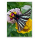 Una hermosa mariposa de cola cebra en mi jardín floral disfrutando de una zinnia junto a un escarabajo japonés.