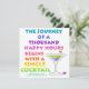" El viaje de mil horas felices comienza con un solo cóctel." ~ la diva de Martini ilustrada con un arco iris martini y cuatro aceitunas coloridas.
