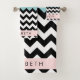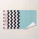 Elegante, elegante y sofisticado zigzag (chevron) en color blanco y negro sobre fondo azul. Regalo moderno y moderno, perfecto para el amante del zigzag en tu vida. Personalice agregando su nombre, apodo, monograma o iniciales.