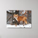 Un zorro se detiene a mirar en el suelo nevado al borde del bosque.