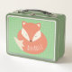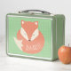 Cute diseño personalizado de zorro dormido con fondo verde de punto de polka con el zorro despertador y alerta al revés.