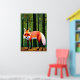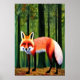El zorro rojo parado en la fortaleza del bosque al fondo. Este es un arte generado por IA.